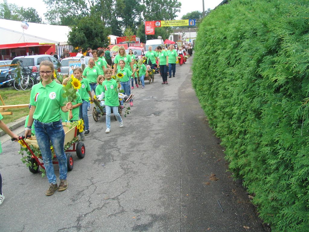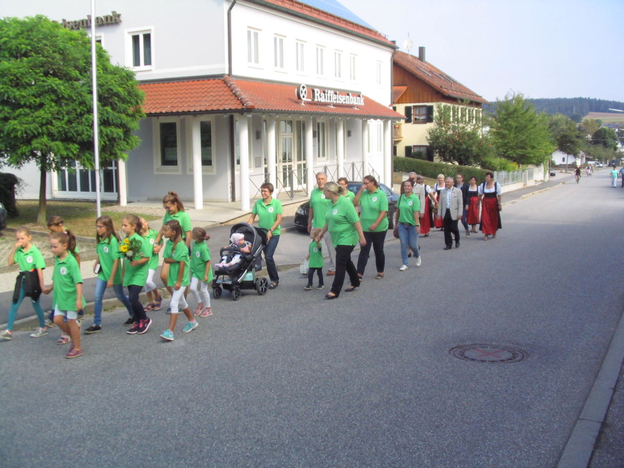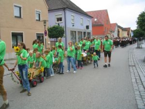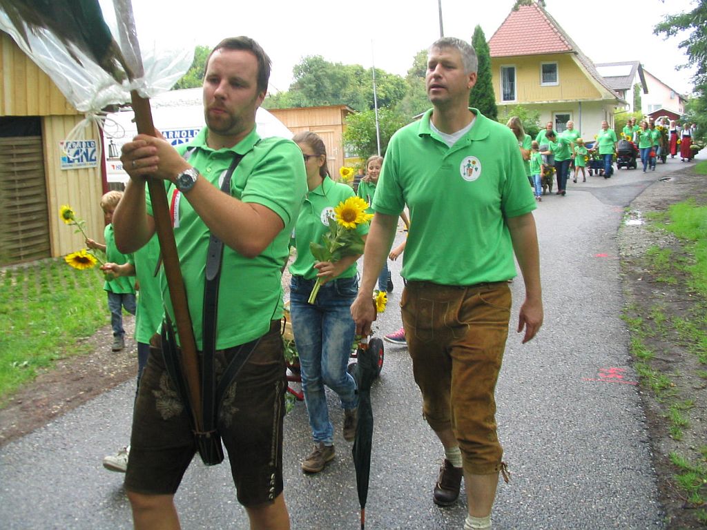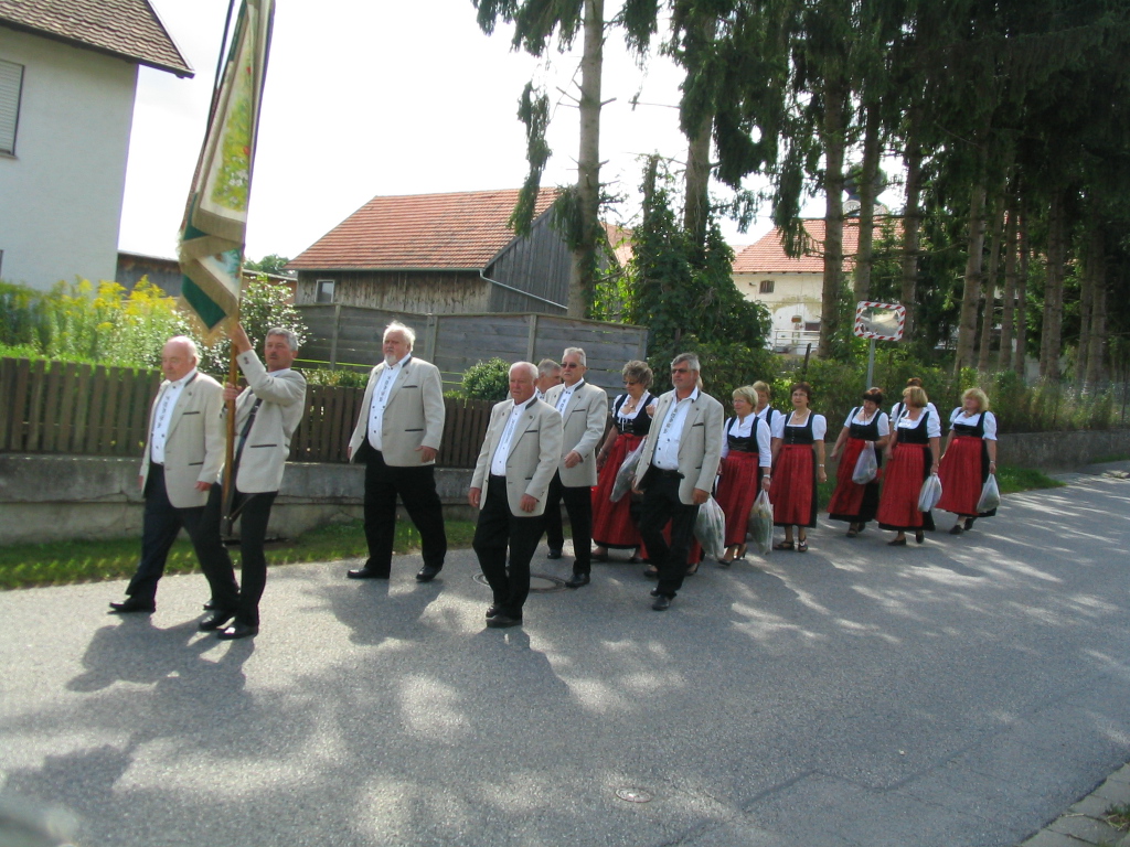 Der OGV beim Kirchenzug am 15. August 2014; hier ging es dann gleich mit Fahnenjunker Albert Uretschläger ins Vereinslokal Prüglmeier