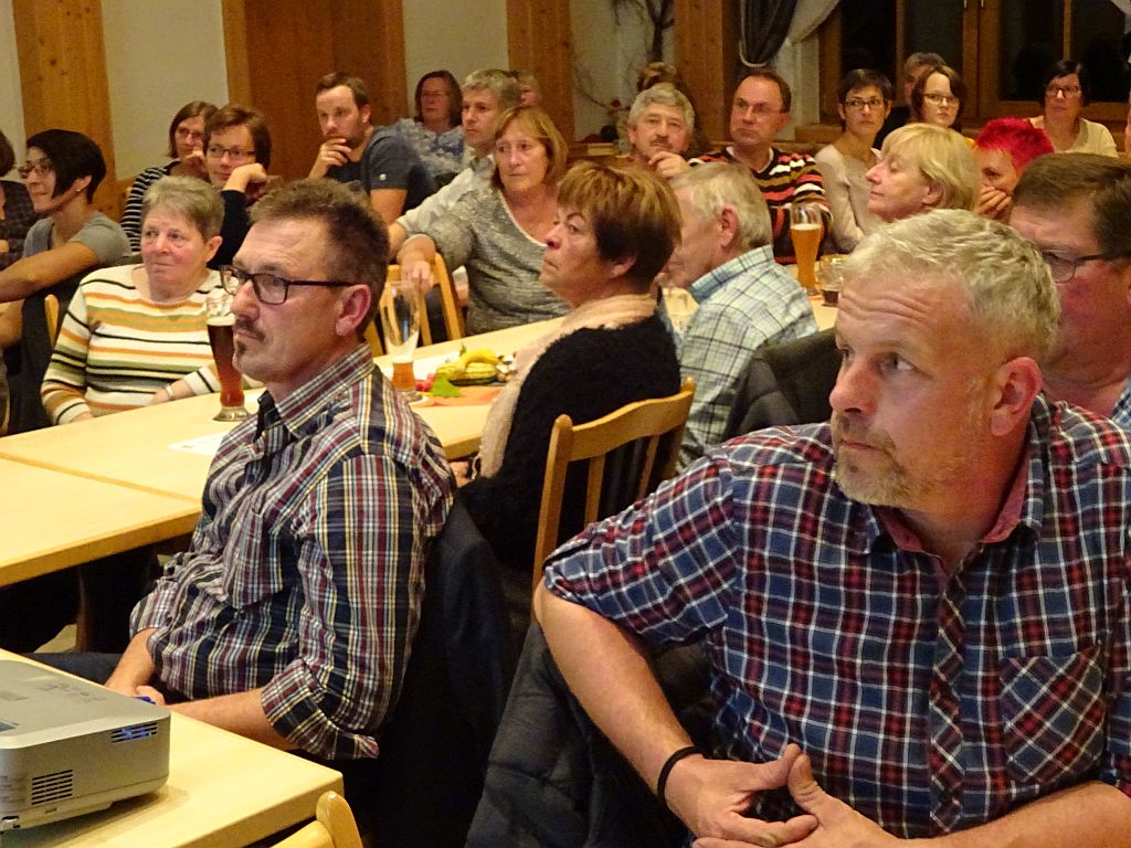 ![]() Ein Blick in den vollbesetzten Versammlungsraum bei der Herbstversammlung 2018 mit Bürgermeister Erwin Ranftl und 2. Kreisvorsitzende Dagmar Köbler |