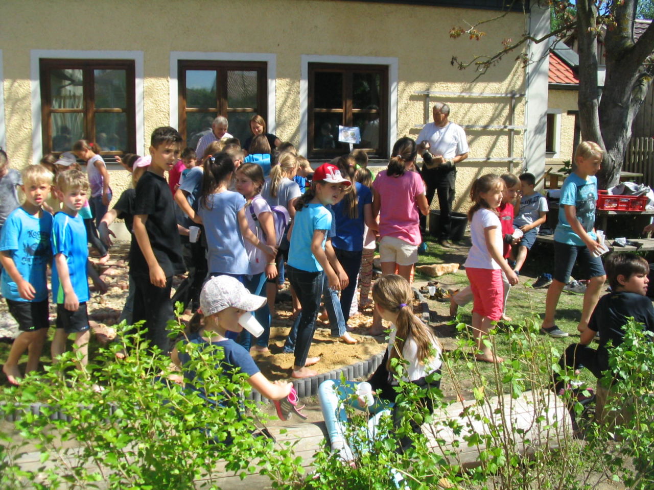Beim Schulgartentag wird mit der Schule und den Kindern stets eine größere Aktion durchgeführt. Wir legten schon zur zeit, als Ursula Brandl Schulleiterin war , einen großen Schulgarten mit acht Gartenbeeten (zwei für jede Klasse) und einer langen Obstbaumspalieranlage an. Dieser so tolle Schulgarten wurde durch eine Neuplanung nach der Zeit von Ursula Brandl als Rektorin umgeändert. Wir pflanzten den Korbiniansapfel, einen Ginkgobaum, errichteten zuletzt ein Hochbeet für den Schulgarten, eine neue Kräuterspirale wurde und 2017 wurde bei einer großen Aktion ein wunderbarer und künstlerischer “Fußfühlpfad” oder auch “Barfußpfad” errichtet. Hier wurde das Logo der Schule, ein Kompass, verwendet und nach der Idee von Christine Linhard und dem Mitplaner und Zeichner Michael Biberger nach vielen Arbeitseinsätzen und Besprechungen und vielen freiwilligen Helfern zum Schulgartentag am 26. Mai 2017 fertiggestellt. Im Kreis ist das Logo der Schule, ein Kompass, die Donau von West nach Ost mit originalem Donaukies und Materialien aus dem Gebiet nördlich und südlich der Donau eingearbeitet Auf alle diese Leistungen sind wir sehr stolz, denn die Schule und die Jugendarbeit liegt uns sehr am Herzen.