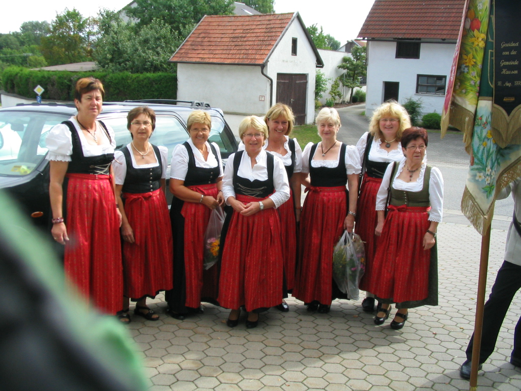 ![]() 2014 wurde für die Frauen eine neue Vereinskleidung angeschafft. Stolz zeigen sich die Frauen mit ihren schwarzen Dirndl mit roter Schürze v. l. Renate Busch, Angela Schuster, Monika Graml, Hildegard Lukas, Eva Köppl, Marianne Biberger, Anneliese Blaha und Lotte Roithmeier |