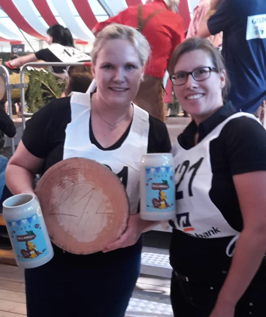 ![]() Unsere Damenmannschaft hat in den letzten 15 Jahren ohne Unterbrechung beim Holzsägewettbewerb am Gillamoos mit stets guten Erfolg teilgenommen. Elisabeth Scheuck (links) war immer dabei. Ganz toll! |