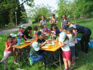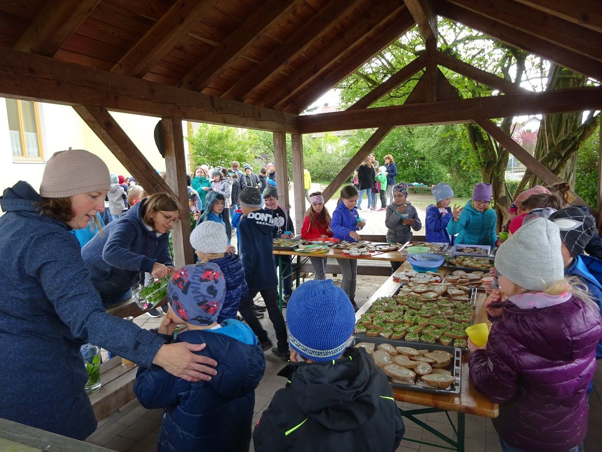 Für alle Kinder der Schule gab es nach zwei Stunden Arbeit eine verdiente Brotzeit mit gesunden Broten, Apfelsaft und Kräuterlimonade