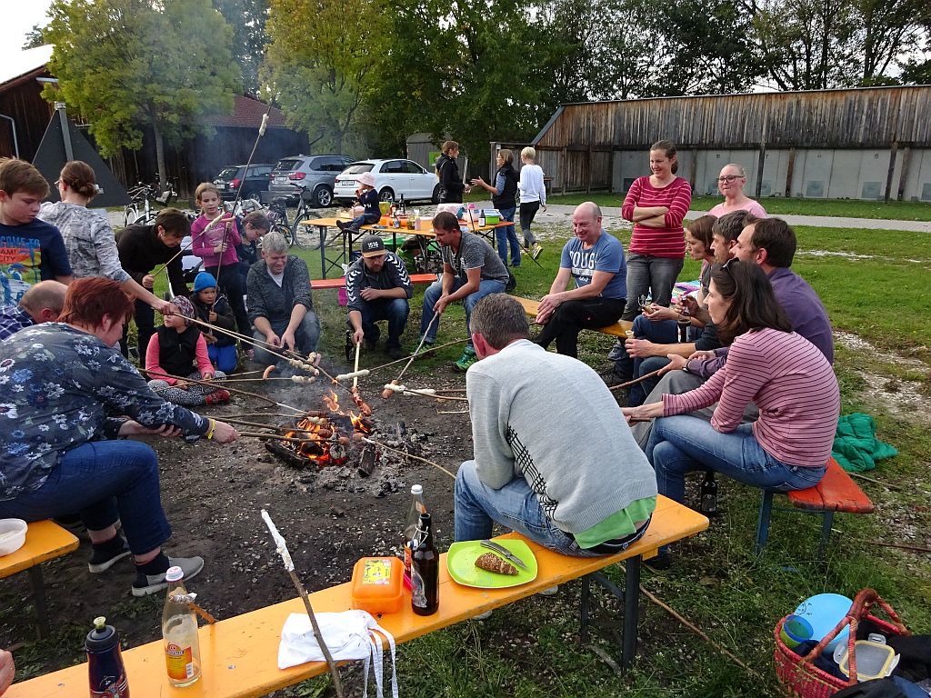 Nach einem Aktionstag mit den Kindern ging es zum Vereinsstadel, wo bei einem Lagerfeuer Würstel und Stockbrot zubereitet und am offenen Feuer fertig gegrillt wurden. Hier waren dann die Eltern der OGV-Kids in voller Aktion