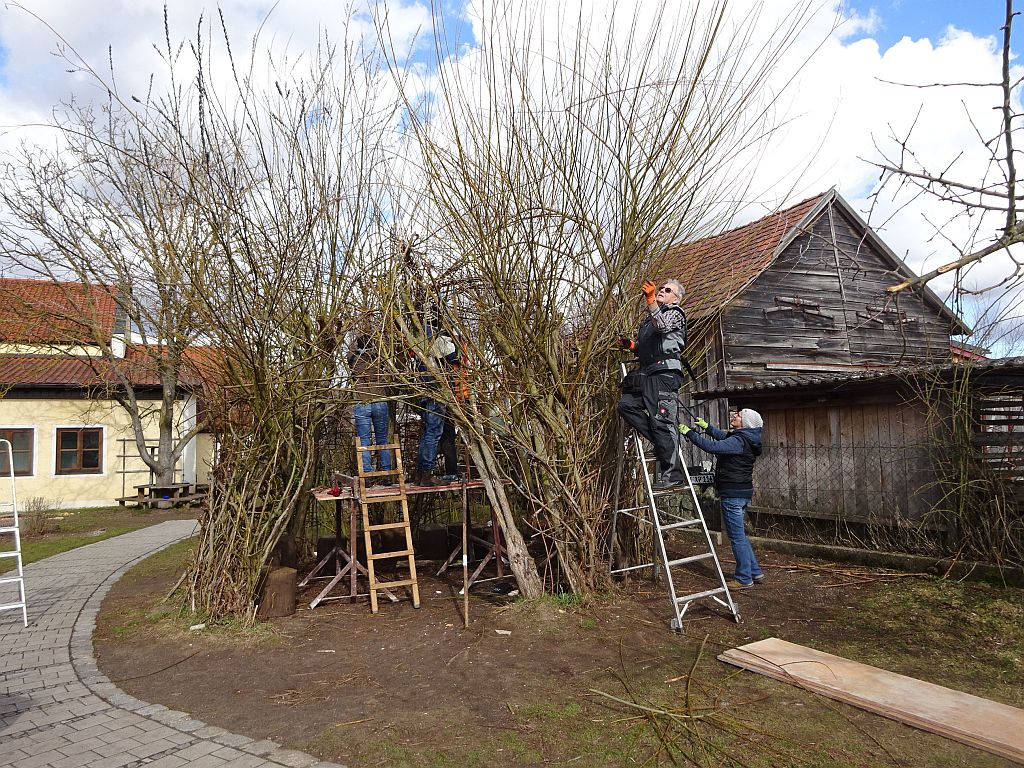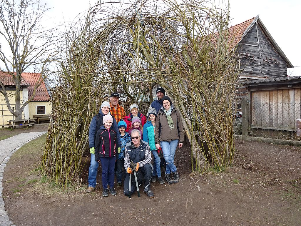 Nach knapp 2 Stunden Arbeit war der Weidentipi wieder in einer ansehnlichen Form. Die freiwilligen Helfer freuten sich über den gelungenen Einsatz und das gute Ergebnis