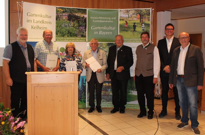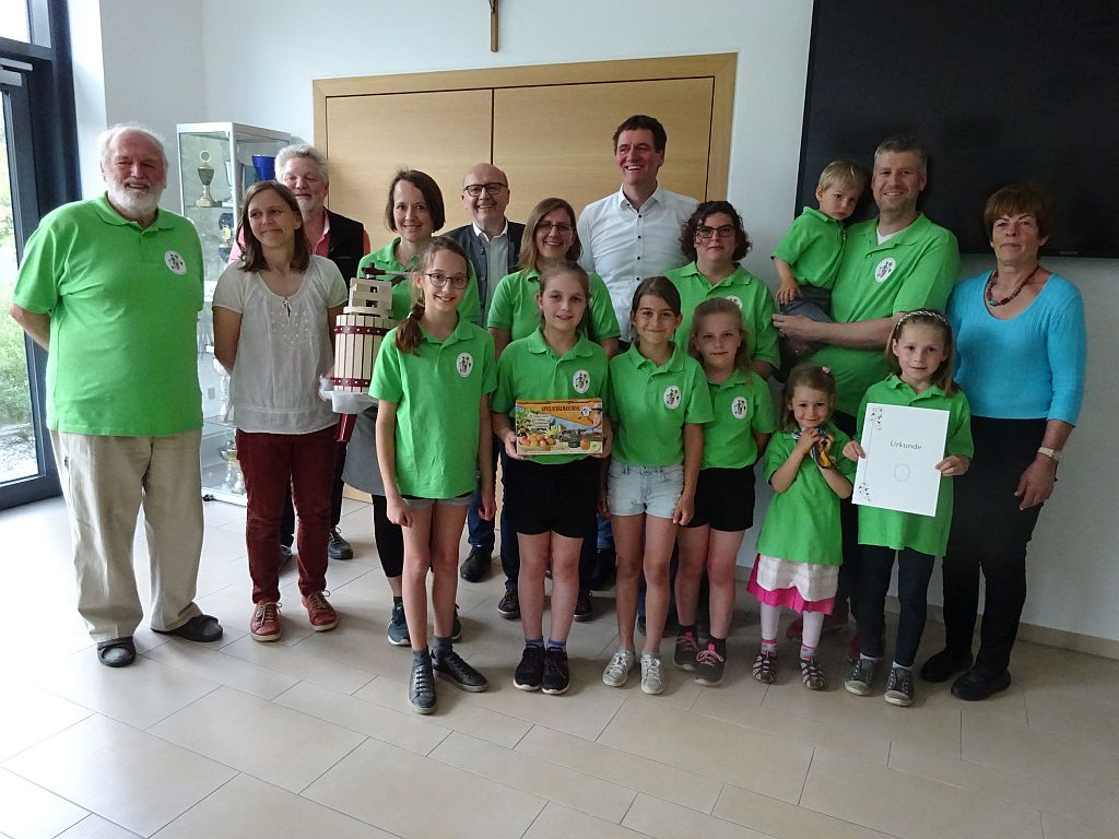 Beim Jugendwettbewerb des Landesverbandes erhielt der OGV Hausen den zweiten Platz auf Kreisebene. Mit auf dem Bild Christine Linhard, Franz Nadler Landrat Martin Neumeyer, Kreisvorsitzender Harald Hilllebrand und 2. Kreisvorsitzende Dagmar Köbler