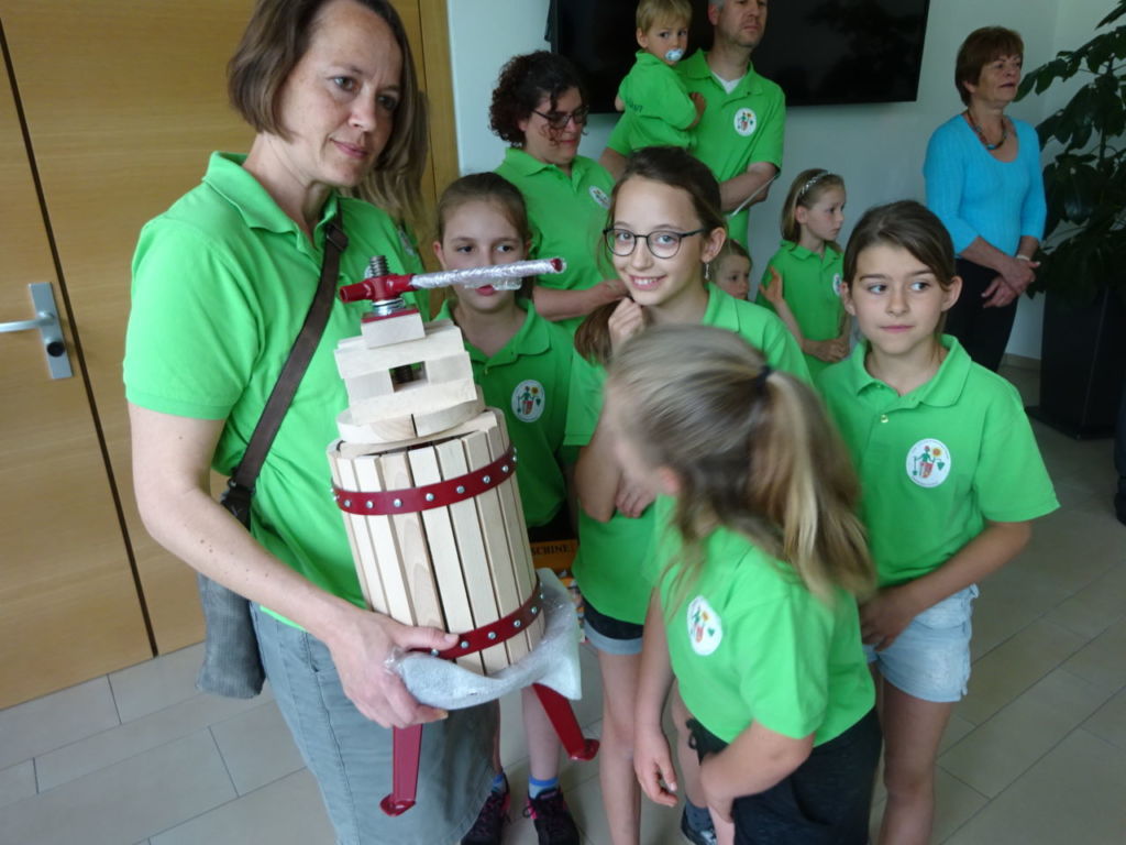 Beim Jugendwettbewerb “Streuobstvielfalt — beiß rein” erhielt der OGV Hausen als Preis eine Obstpresse. Diese nahm Sonja Roithmeier entgegen.