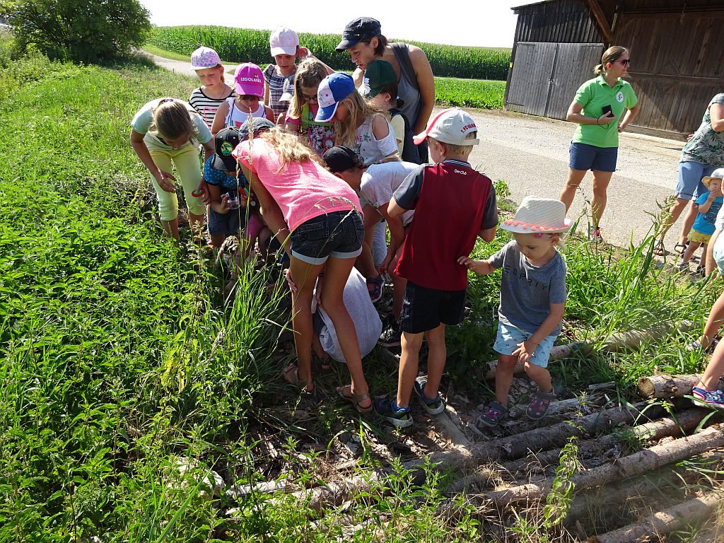Bei einer sehr gut organisierten Aktion fühlten sich die OGV Kids im Feckinger Bach wohl. Es war hier die Aufgabe, die Bewohner des Baches zu erforschen