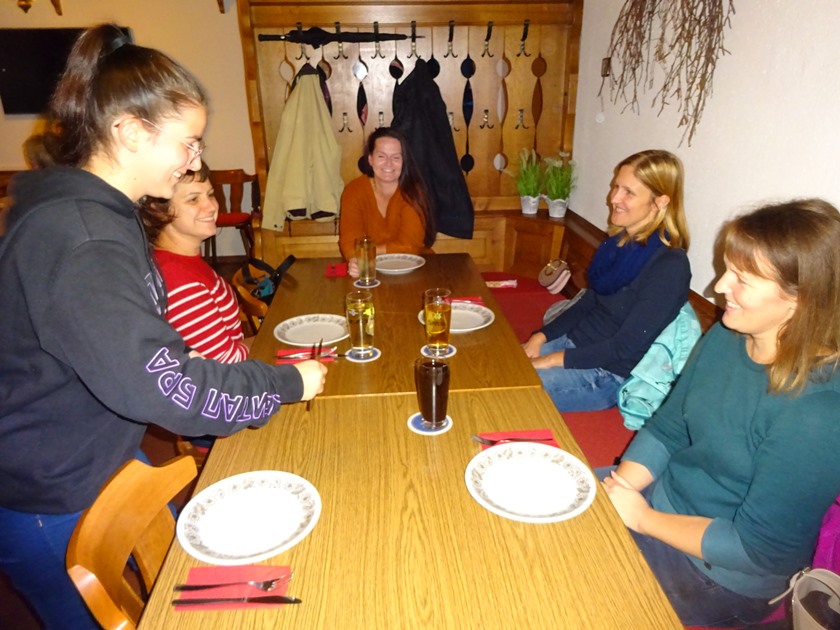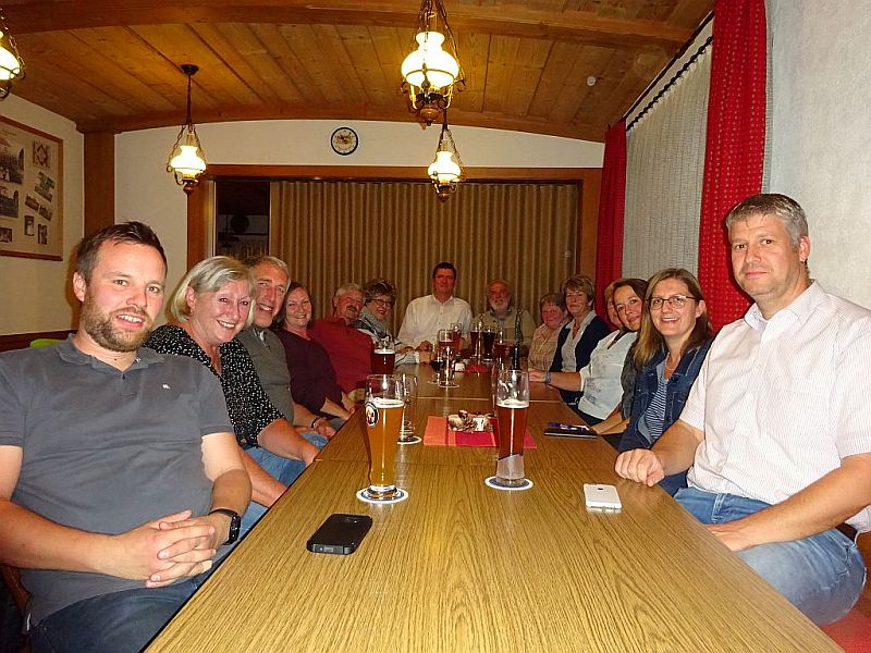 Zu einem Stammtisch mit Helferessen für die Aktiven bei der Pflanzen-Bestellaktion vom Frühjahr 2020. Stehend der Wirt Karl Prüglmeier.