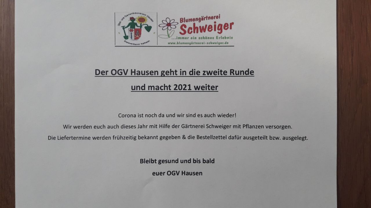 Termine des Obst- und Gartenbauvereins Hausen für das Vereinsjahr 2021