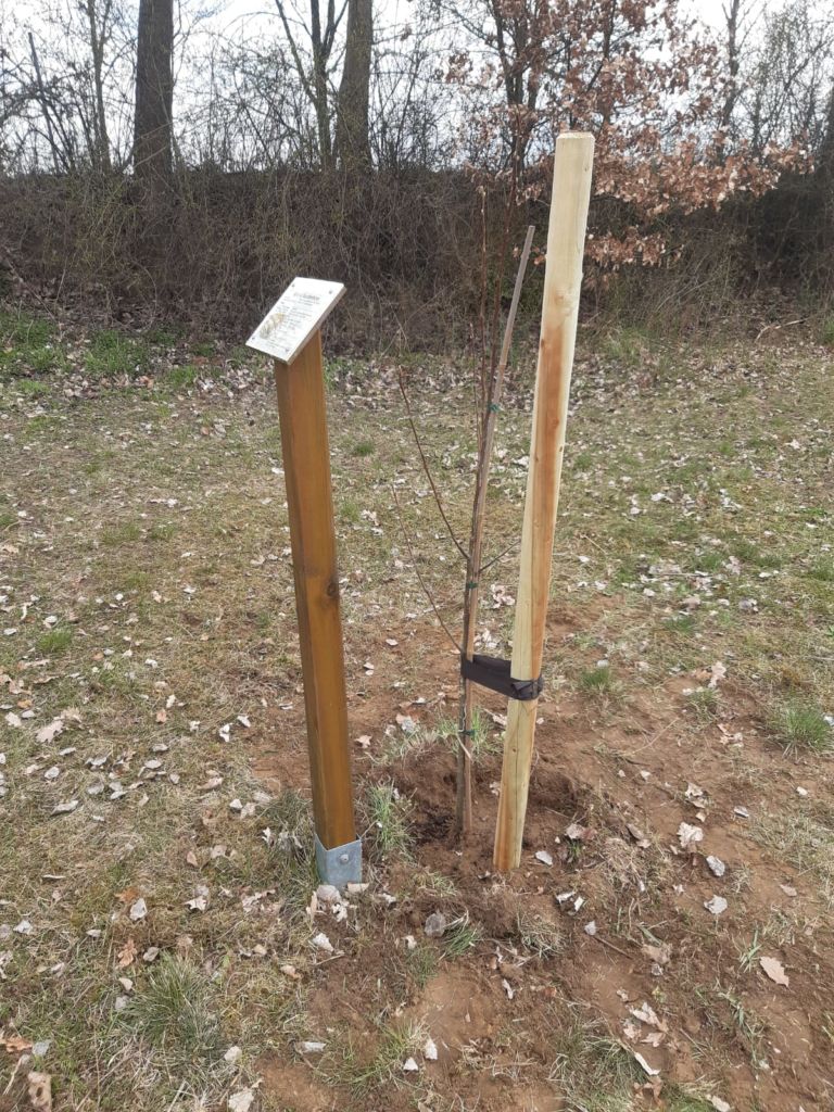 Für den durch eine starke Verletzung eingegangenen Birnbaum wurde eine neue “Bosc‘s Flaschenbirne” am 15, April 2021 von der 2. Vorsitzenden gepflanzt. Jetzt gilt es zu gießen. Der Baum sollte von den Jugendgruppen gepflanzt werden. Aber wegen “Corona” ging es nicht.