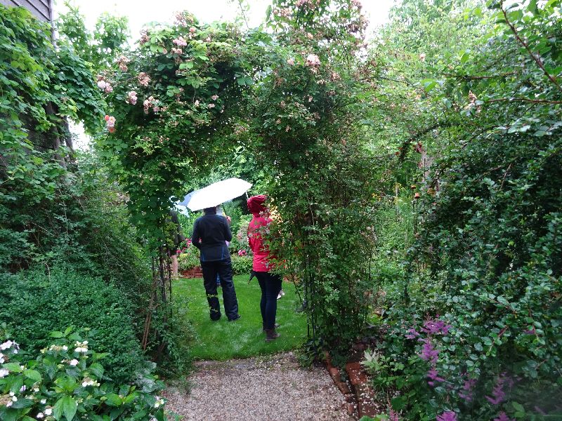 Im Naturgarten von Andrea Grebler waren sehr viele und interessante Pflanzen und Anordnungen zu sehen. Von einem in den anderen Gartensektor geht man durch einen Rosenbogen