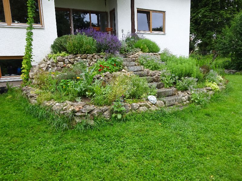 Im Naturgarten von Dr. Miriam Stock gefiel auch dieser Treppenaufgang vom Garten zum Haus. Die Kalksteine sind Sammelsteine aus der Umgebung. Die Granitsteine sind aus einem Rückbau eines anderen Grundstückes