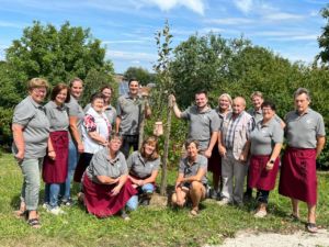 Im Rahmen des Gartenfests wurde von der Vorstandschaft des OGV zu Ehren Ihres 2021 verstorbenen Vorstands Hans Kellner ein Apfelbaum am Gemeindeplatz gepflanzt.